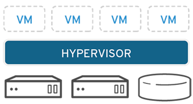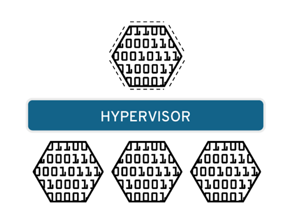 하이퍼바이저는 CPU, 메모리, 스토리지 등의 물리 하드웨어의 리소스를 처리하는 pool이 되어서 기존 또는 새로운 VM에 리소스를 쉽게 재배치할 수 있다. 위 그림처럼 하이퍼바이저는 할당되었던 리소스를 각 가상 머신에 제공하고, 물리 리소스에 대해 VM 리소스의 일정을 관리한다.