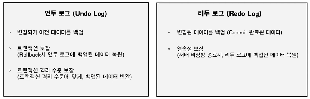 MySQL을 비롯한 여러 DB에서는 트랜잭션의 안정성과 무결성을 보장하기 위해 Redo Log, Undo Log를 사용한다.