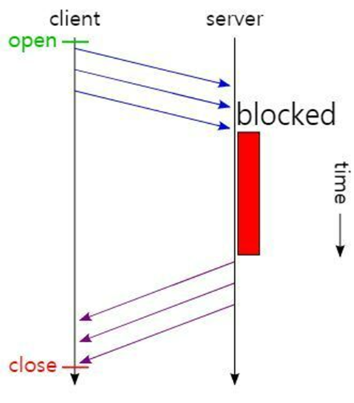 또한 패킷이 처리되는 순서 또한 정해져 있으므로 이전에 받은 패킷을 파싱하기 전까지는 다음 패킷을 처리할 수도 없다. 이렇게 패킷이 중간에 유실되거나 수신 측의 패킷 파싱 속도가 느리다면 통신에 병목이 발생하게 되는 현상을 HOLB라고 한다.
