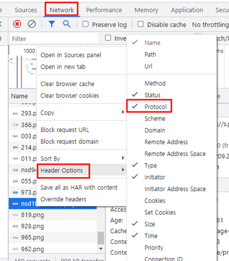 크롬에서 http 버전을 확인하는 방법이 어떻게 되나요?