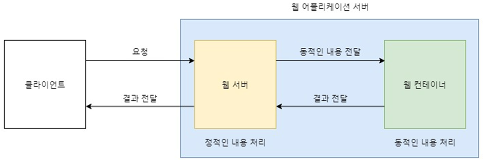 클라이언트의 요청에 따라 동적인 콘텐츠(ex. JSP)를 생성한다. 예를 들어 데이터베이스에서 데이터를 가져와 웹 페이지에 동적으로 표시하는 등의 작업을 수행한다. - 웹 서버 기능 보유