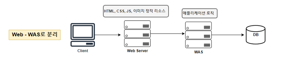 웹 서버는 정적 콘텐츠(HTML, CSS, 이미지 등)를 제공하고, WAS는 동적 콘텐츠를 생성한다. 이를 통해 각 서버가 최적화된 작업을 수행하여 시스템 성능을 향상시킬 수 있다. - 성능 및 확장성