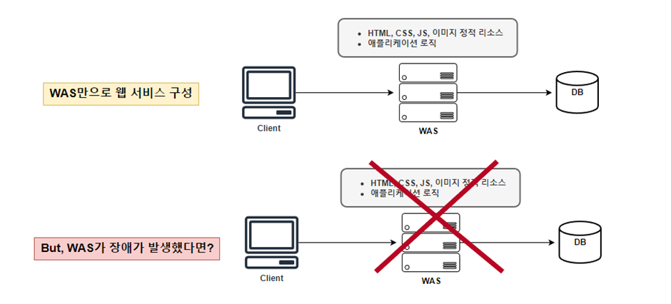 앞서 설명했듯이 WAS는 WS의 기능을 포함하고 있다. 그렇다면 WAS만 가지고 웹 서비스를 구현하는 것이 더 효율적인 것처럼 보인다. 하지만 WS와 WAS를 모두 사용하여 웹 서비스를 구현하면 다음과 같은 장점이 있다.