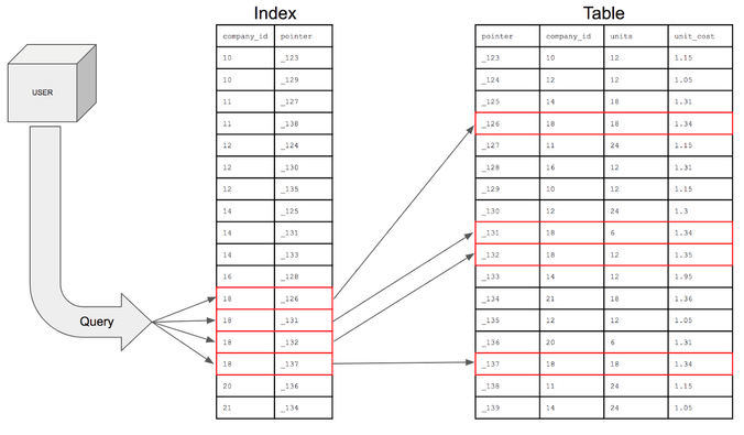 인덱스가 없다면 테이블에서 원하는 데이터를 찾기 위해 모든 데이터를 검사하는 full table scan이 진행된다. 하지만 인덱스는 인덱스 데이터가 정렬 되어있기 때문에 조건에 맞는 데이터를 빠르게 찾을 수 있다.