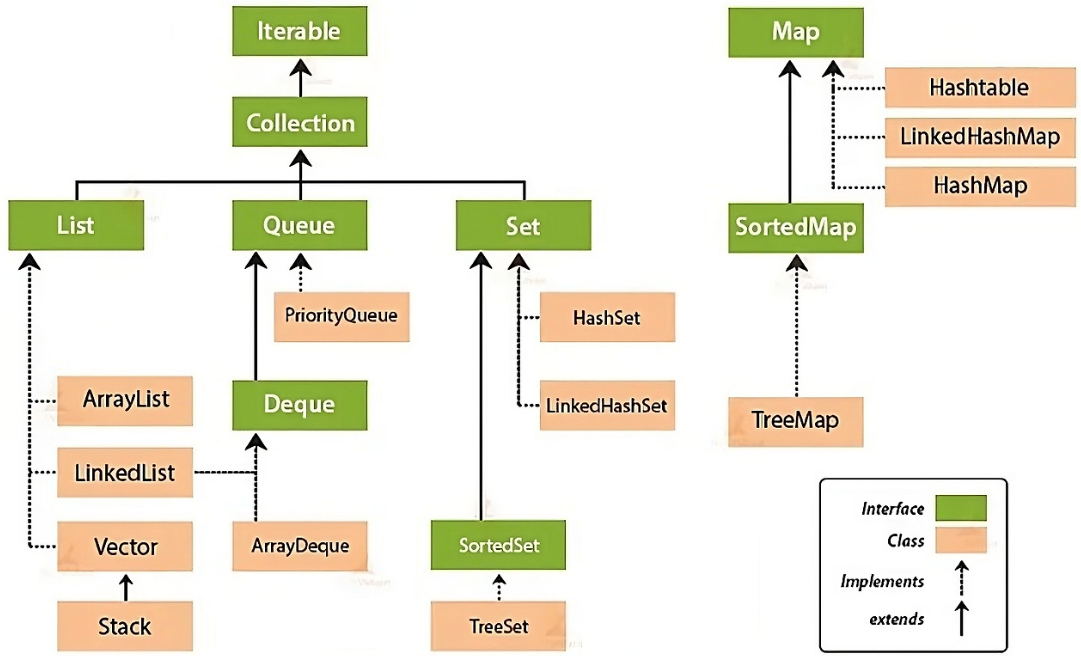 Collection은 Iterable을 확장하며, 요소의 추가(add), 제거(remove), 포함 여부 확인(contains), 크기 조회(size) 등 컬렉션의 기본 조작 메소드를 정의한 인터페이스다.