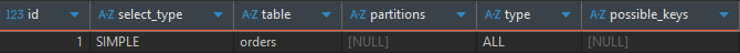 EXPLAIN SELECT * FROM orders WHERE status='COMPLETE';